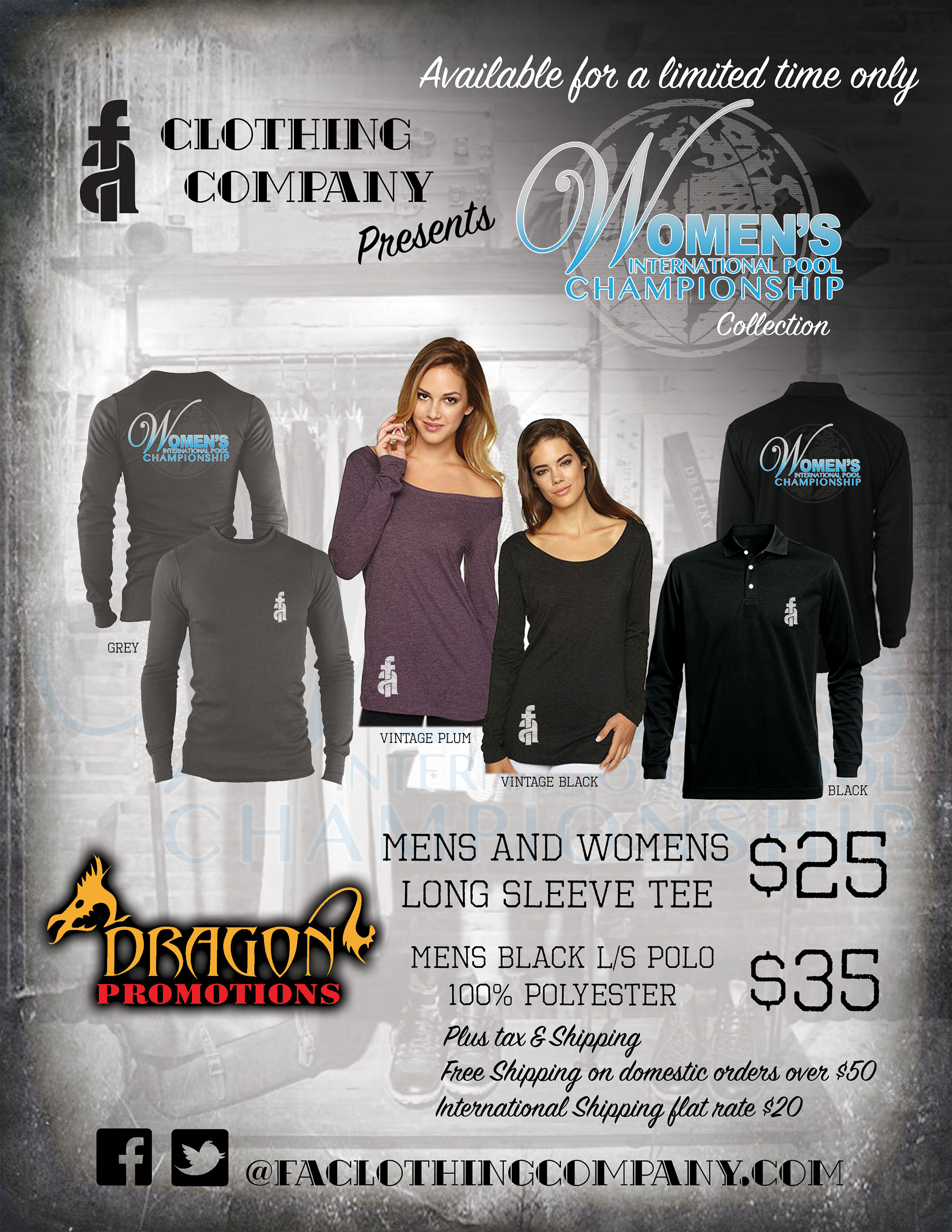 Focused Apparel Flyer for the Woman's International Pool Championship.